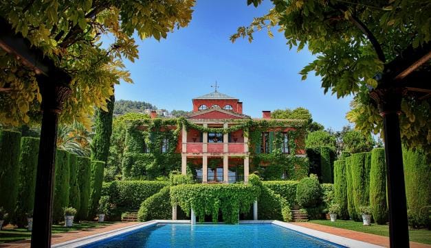 Una bellesa que sorprén el visitant només travessar la porta i prendre l’avinguda principal. Vorejada de xiprers, condueix directament a la casa, una preciosa vila d’estil pal·ladià, coberta d’heura, amb escalinates als dos costats. Per elles s’accedeix a una àmplia terrassa amb espectaculars vistes al Parc Natural del Montgó. Davant de la façana principal trobem un gran estany envoltat d’arbres de formes acurades, que donen un toc d’harmonia al conjunt.